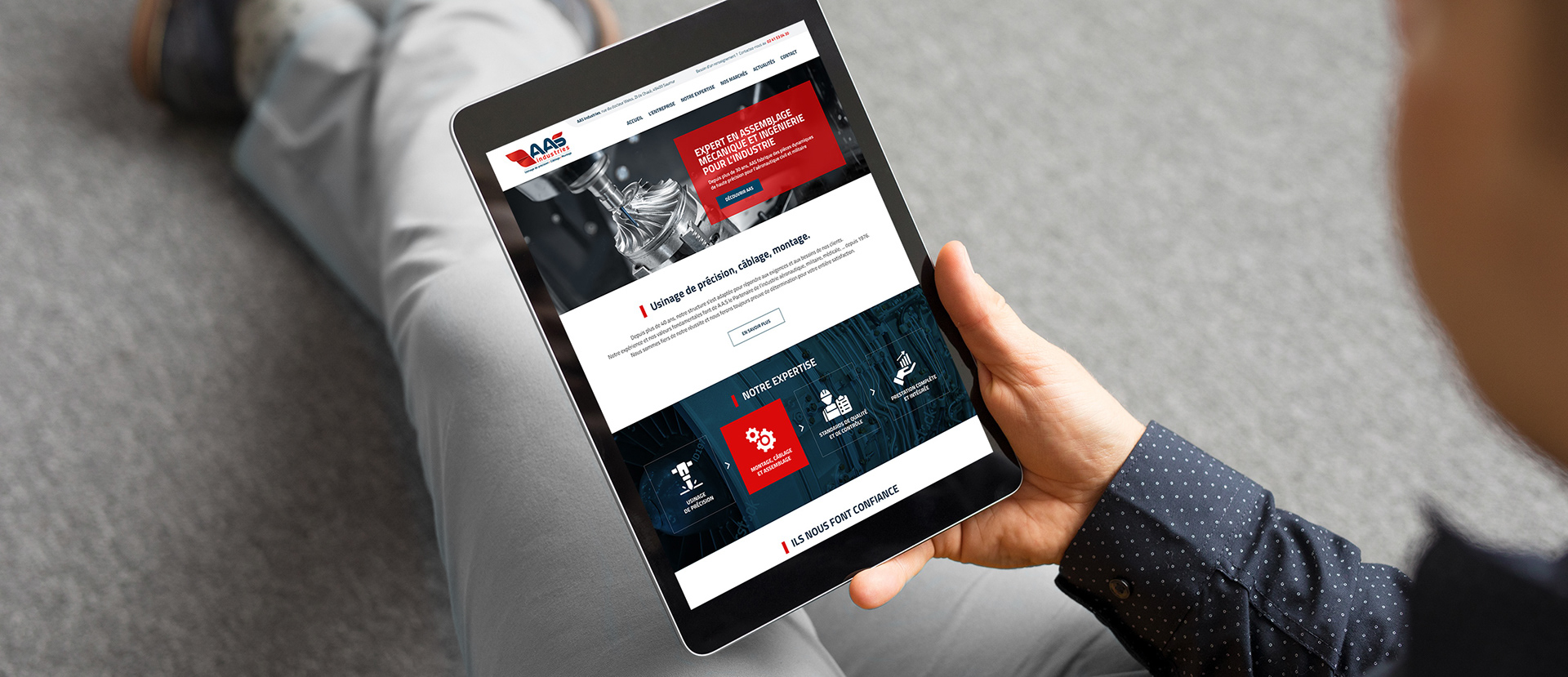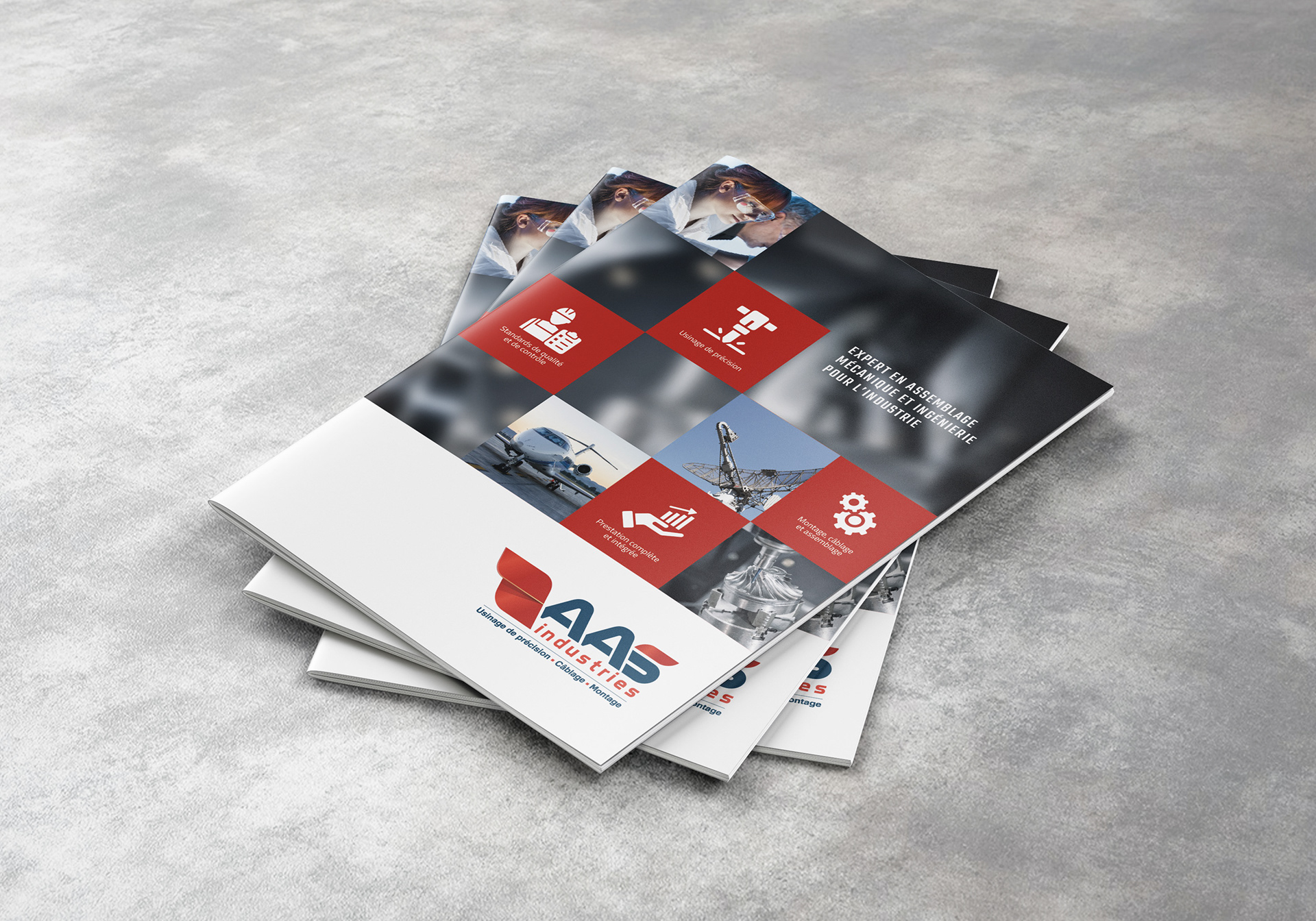 Expert en assemblage mécanique et ingénierie pour l’industrie, l’entreprise AAS renouvelle son identité visuelle. On retrouve dans le logo le fuselage qui évoque les pièces d’avion fabriquée en usine. Différents supports viendront se décliner à partir de la charte établie : un site web, une plaquette, des cartes de visite, etc.