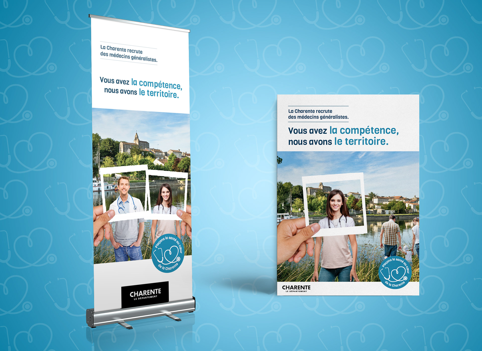 Conception et réalisation d’une campagne de recrutement de médecins en Charente, visant à attirer de nouveaux praticiens dans les zones rurales désertées. La campagne a été déclinée sur différents supports de communication — de l’insertion presse à la plaquette commerciale — avec une exécution graphique cohérente et percutante. Campagne menée en 2020.