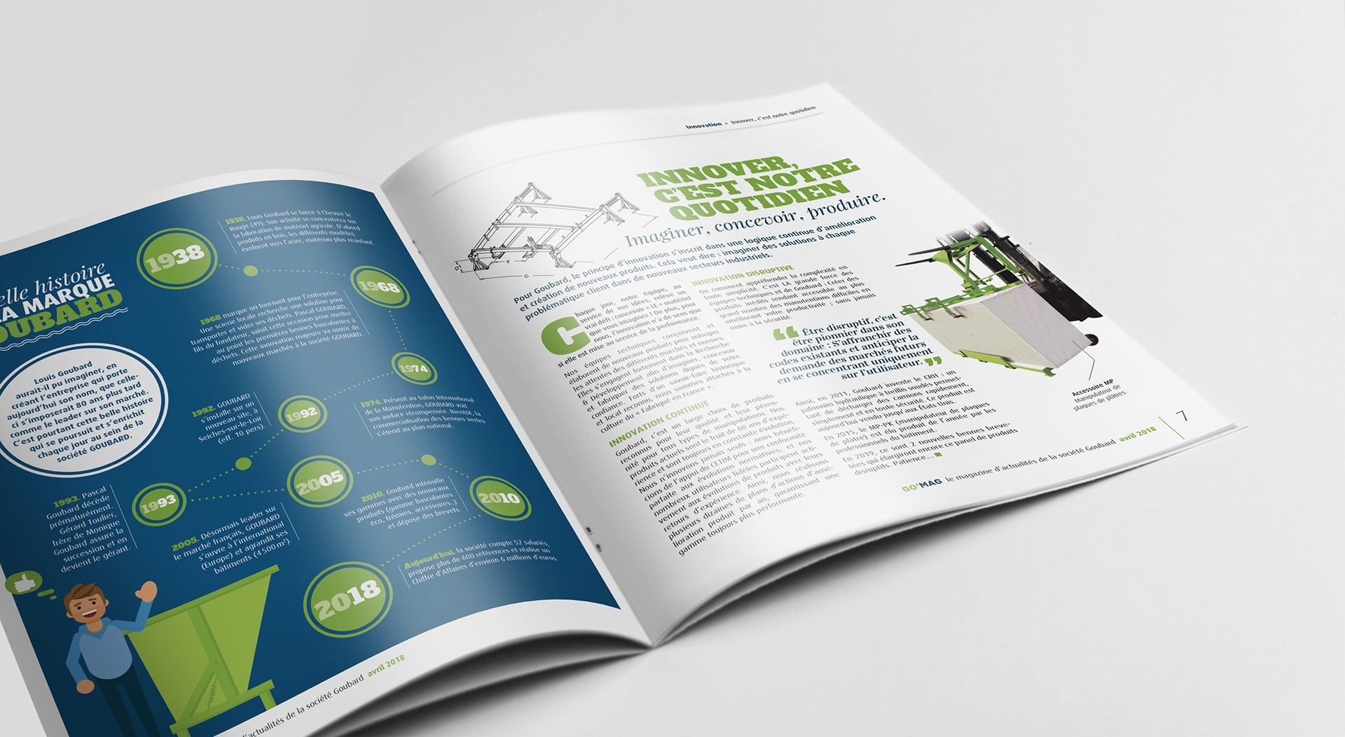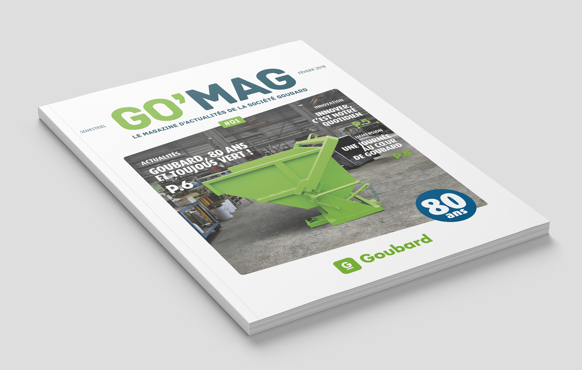 J'ai participé à la création du nouveau magazine de la société Goubard, le Go’mag, pensé comme un magazine d’actualités. Un projet complet, mêlant conception éditoriale et direction artistique, qui a permis d’affirmer l’identité de l’entreprise tout en valorisant ses actualités et ses équipes.